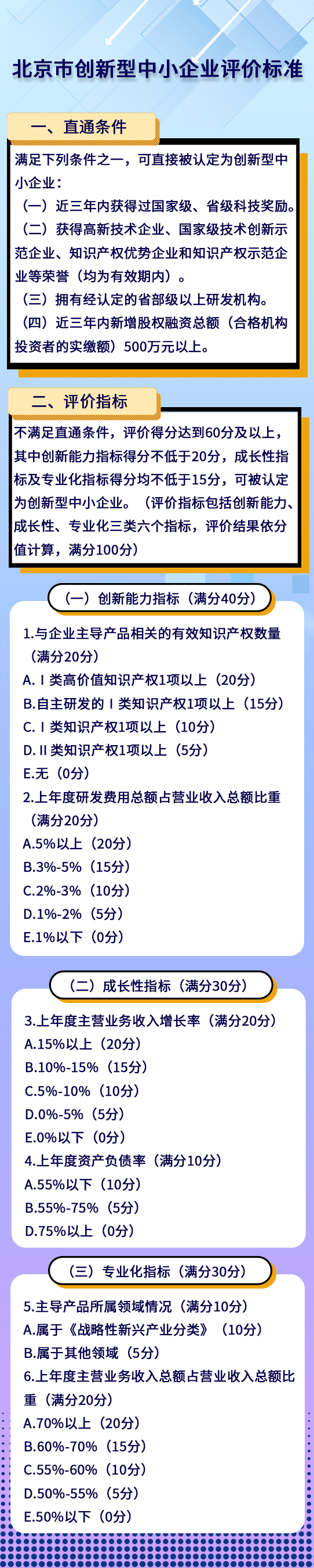 对于北京市创新型中小企业,本市将加大普惠支持服务力度,推动企业加快成长为专精特新中小企业。
